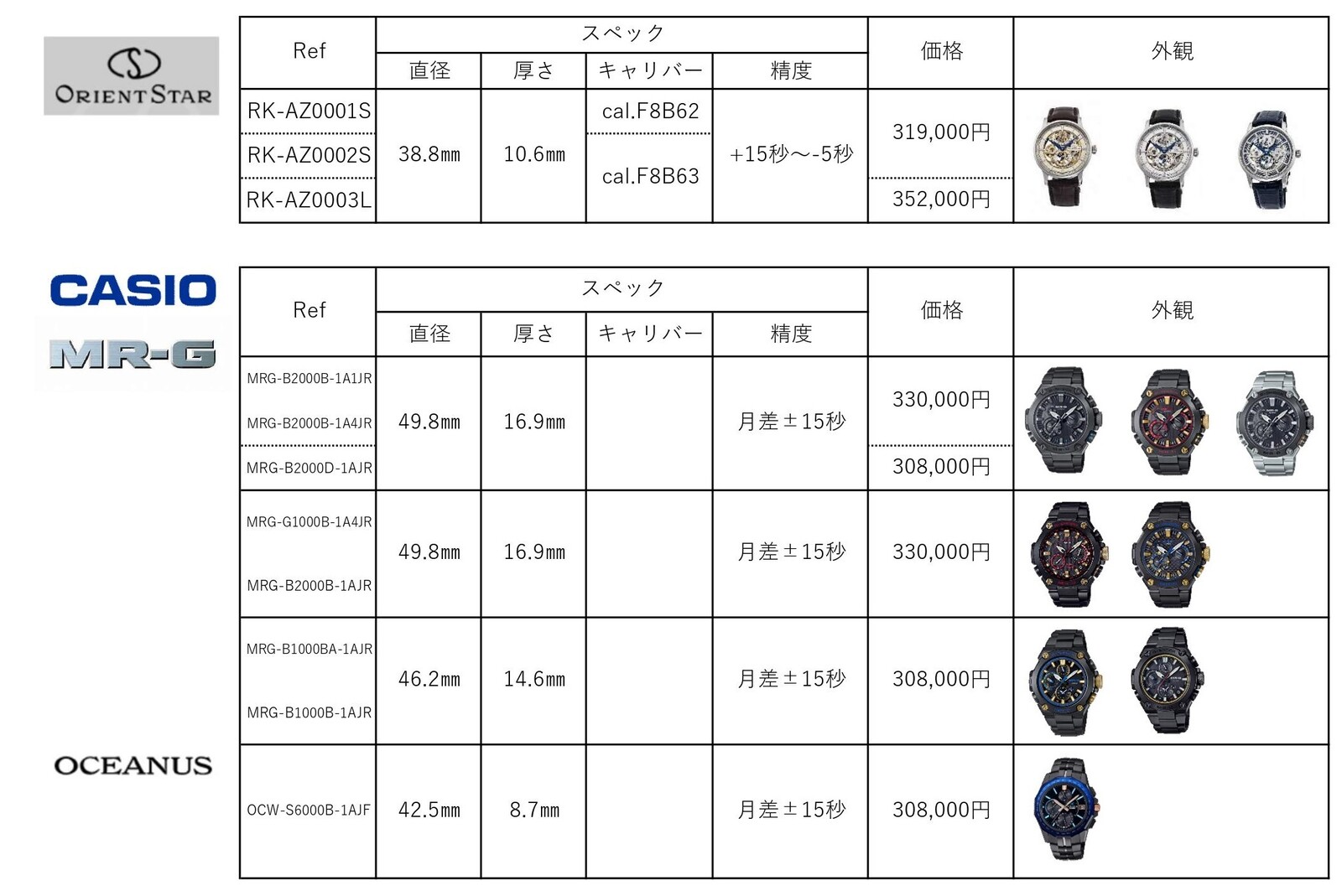 カシオはMR-Gとオシアナスの一部のみ。