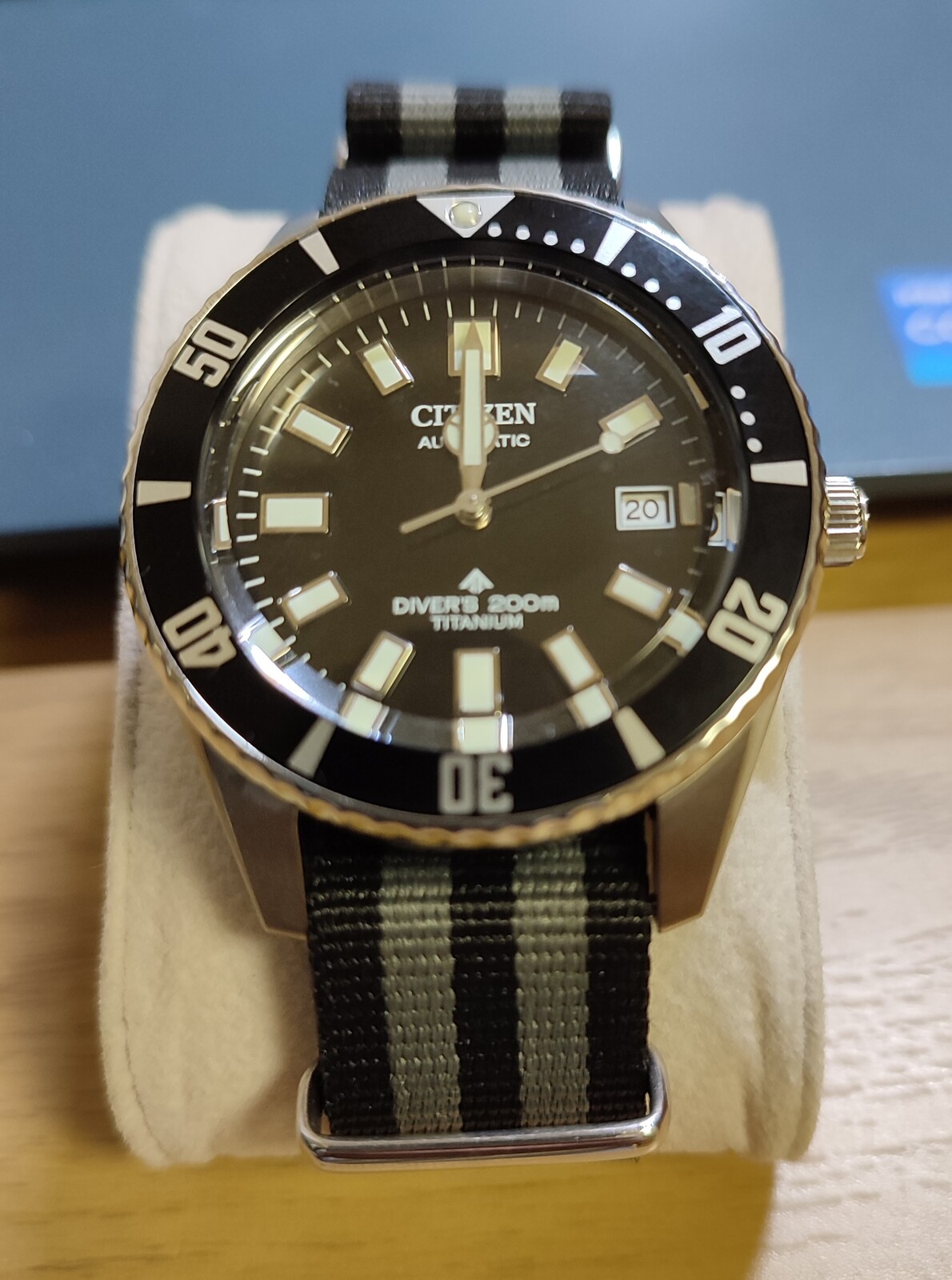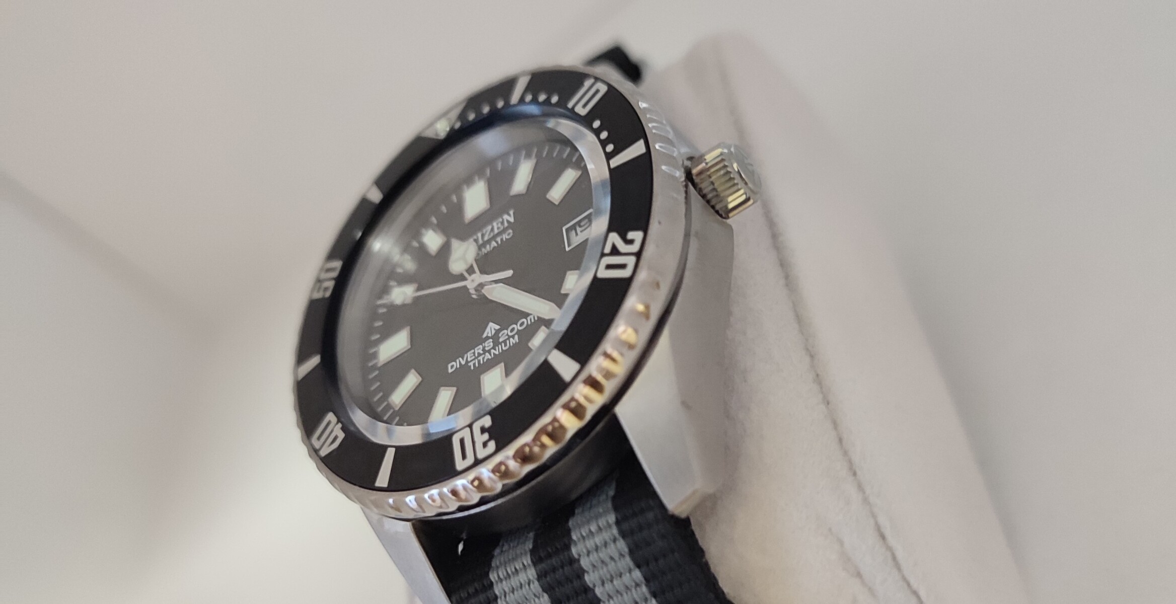 このNATOベルトを装着していたオリジナルモデルは現在、オーバーホール中です。
