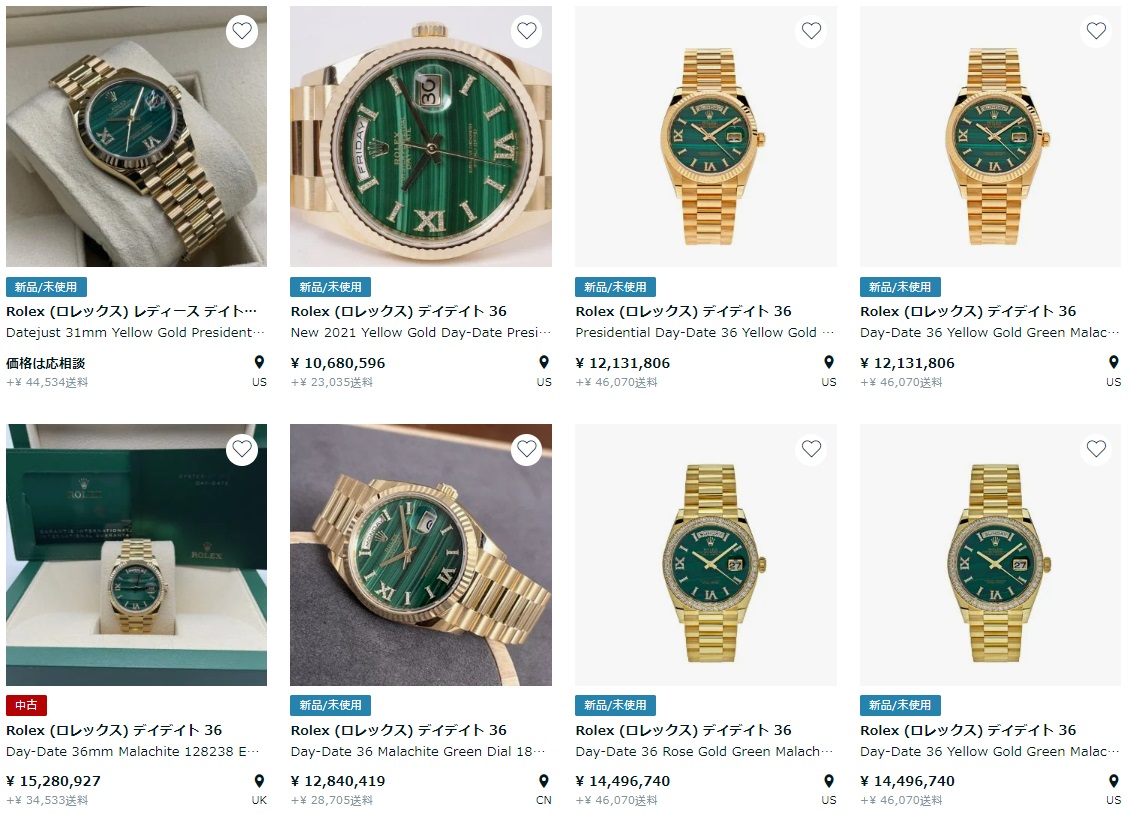 ロレックスではデイトジャストやデイデイトにマラカイト文字盤が採用されています。