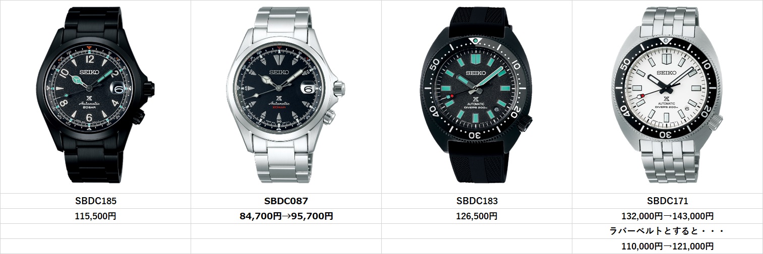2nd前期は今回のモデルが国内初ラバーベルトなので単純な比較は難しいですが、他のモデルがSSベルトとラバーベルトの価格差が22,000円なので、同様にラバーベルトモデルがあると仮定すると、値上げ後の価格差は5,500円となり、アルピニストに比べて割安感が目立ちます。
