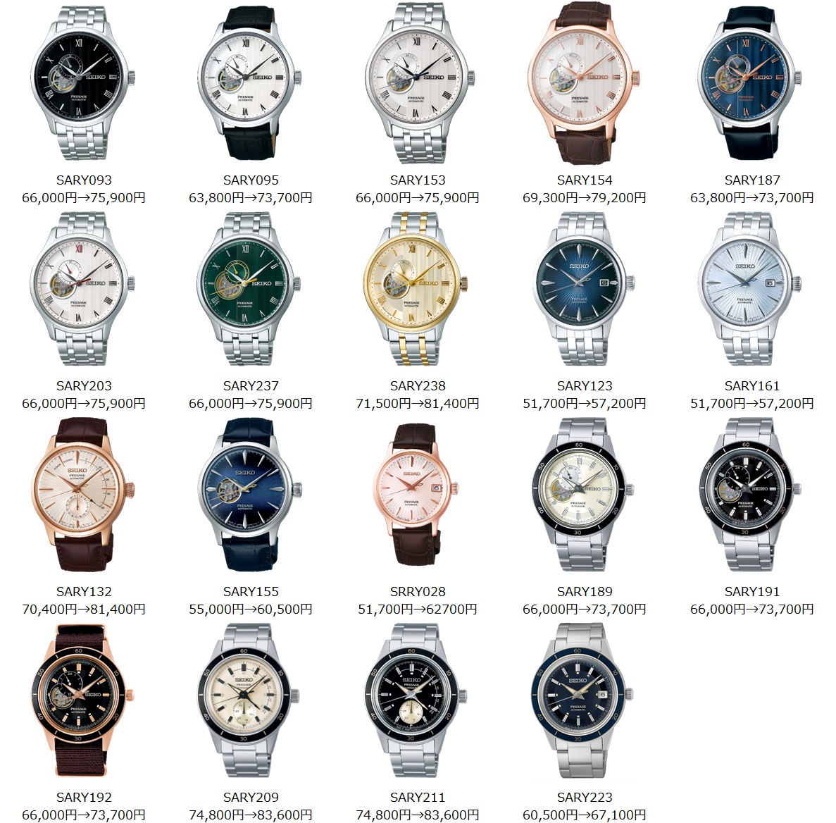 中には特定店限定モデルですが、SARY223のように刺さるモデル(青ベゼル&青文字盤)の値上げもあります。