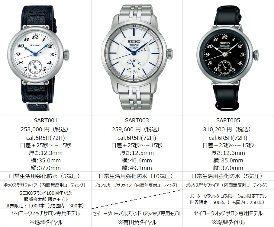 001は限定加味して25万。003はオールSS&琺瑯ダイヤルより高い有田焼ダイヤル採用、しかし既存モデルからの流用パーツもあり同価格を維持。
