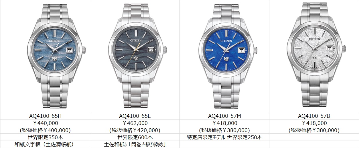 ここのところ、ザ・シチズンの年差±5秒モデルはAQ4100番台の38㎜径、リューズガード無しを中心に発表・発売しており、文字盤やブレス等の違いでモデルラインアップを増やしている状況でした。