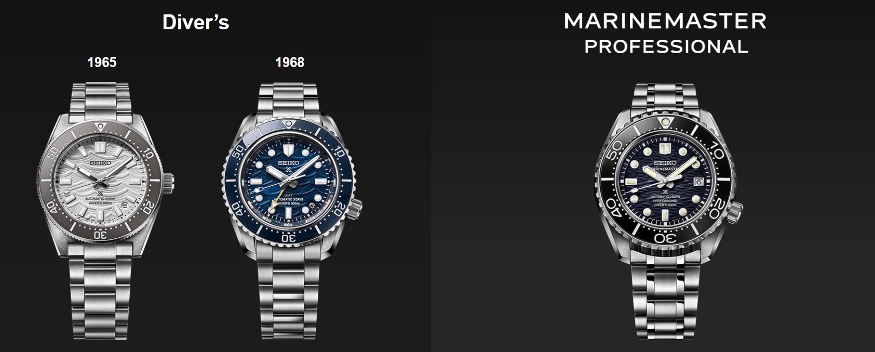 さて、今回の周年記念限定モデルですが、ご覧のとおり「ファーストダイバー現代モデル」「ダイバーズGMT」そして「謎のプロフェッショナルモデル」の3本です。