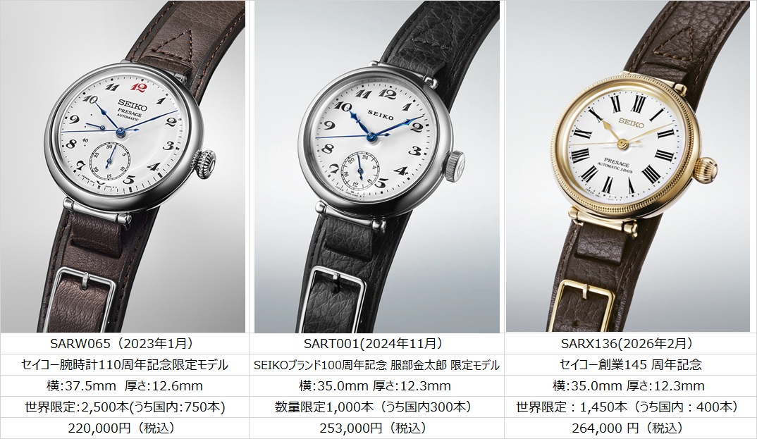 昨年はセイコーダイバーズ60周年、一昨年はクレドール50周年・・・よくもまぁ続くもんだと毎度毎度思いますが、創業145年なら何かしらあるもんでしょう。
