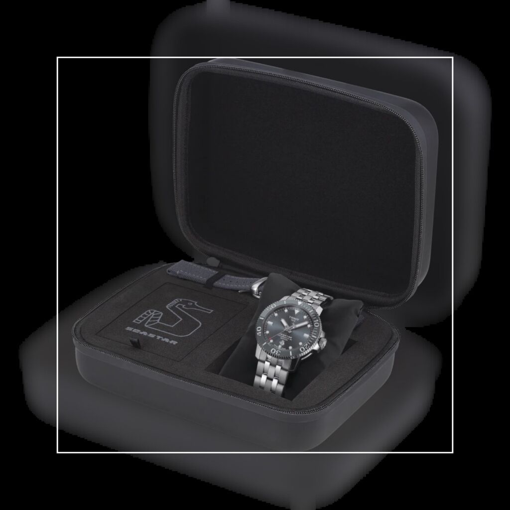 SEASTAR1000は、幅43mm×厚さ12.7mm×重さ180g(メタルブレスモデル)の堂々たる躯体です。(300m防水)