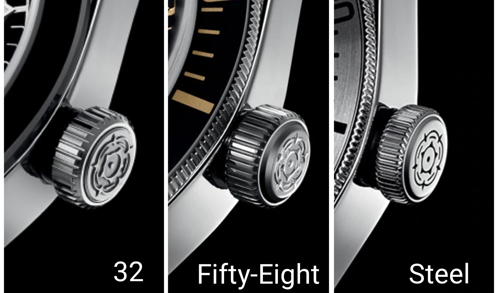 Fifty-Eightはかなり青サブを意識しているようですが、もともとのモチーフは、青サブの前のビッグクラウン。ただ、並べて写しているのは青サブ。