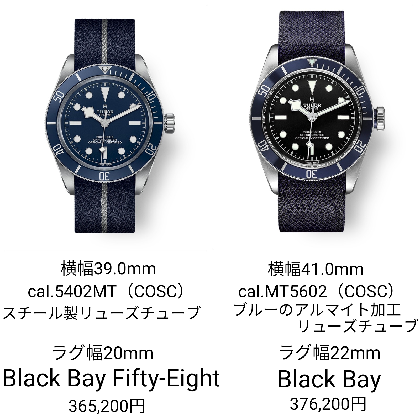 ところで、チューダーといえばBlackBay(無印)が昨今のチューダー人気を不動のものとした感がありますが、Fifty-Eightと何が違うのかよく分からん!ということで簡単にまとめてみました。
