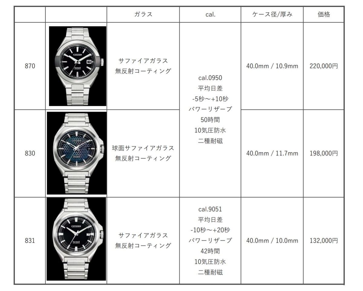 つまり、870・830はセイコーより高精度であり安い。831はセイコーより高精度で価格は同程度。ということになります。