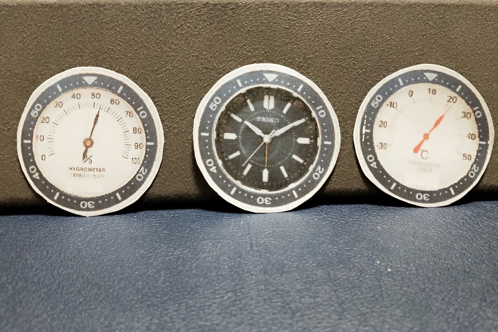 でも、置き時計ってデスク上に何個も置くのは、流石の時計好きでもようやらん。そこで、温度計&湿度計です。