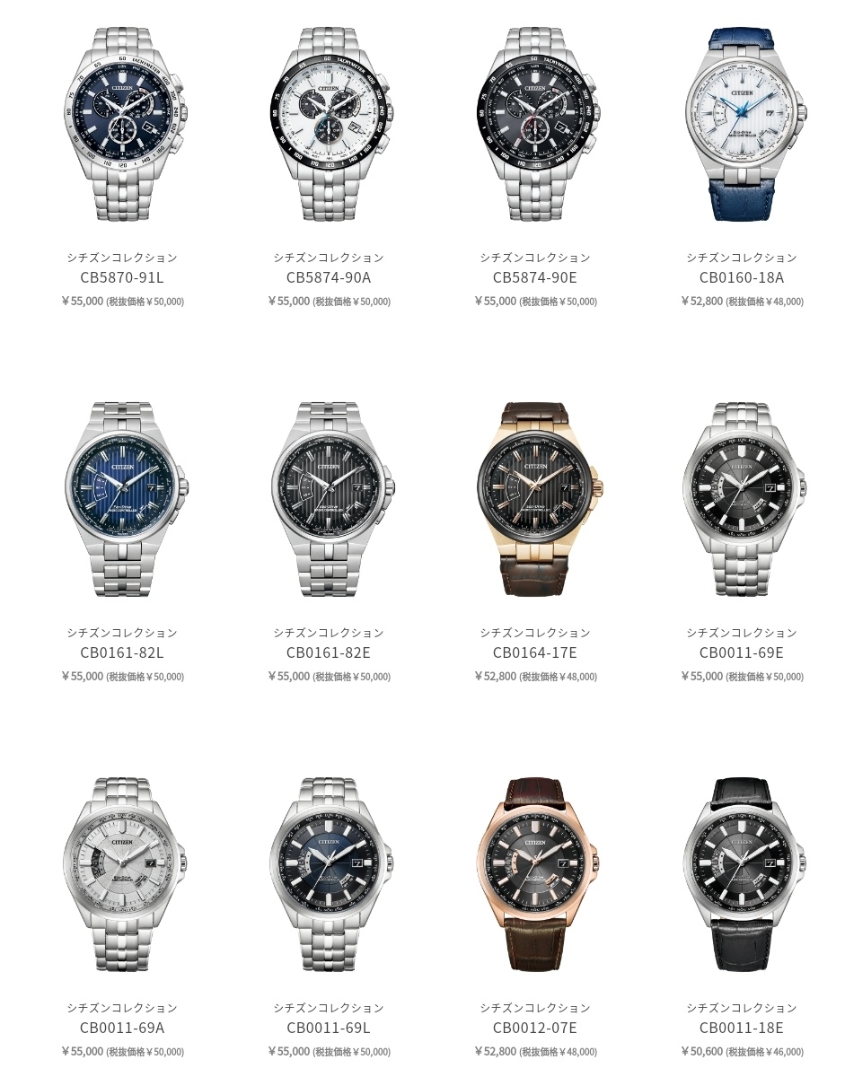 シチズンコレクションシリーズでもソーラー電波モデルは、ほぼ同価格帯での展開です。
